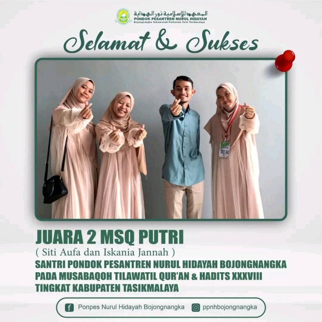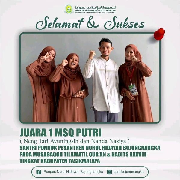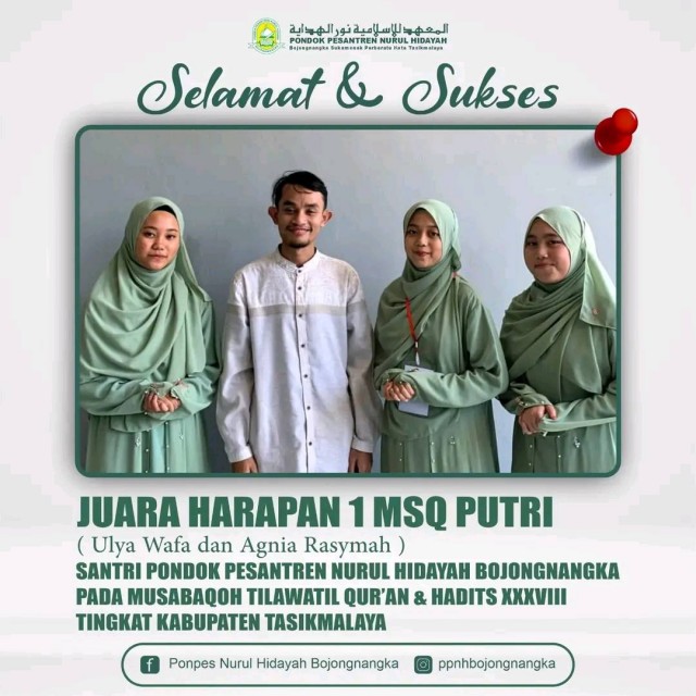 Selamat dan sukses Kepada Santri PONPES Nurul Hidayah Atas Prestasi yang Telah di Raih